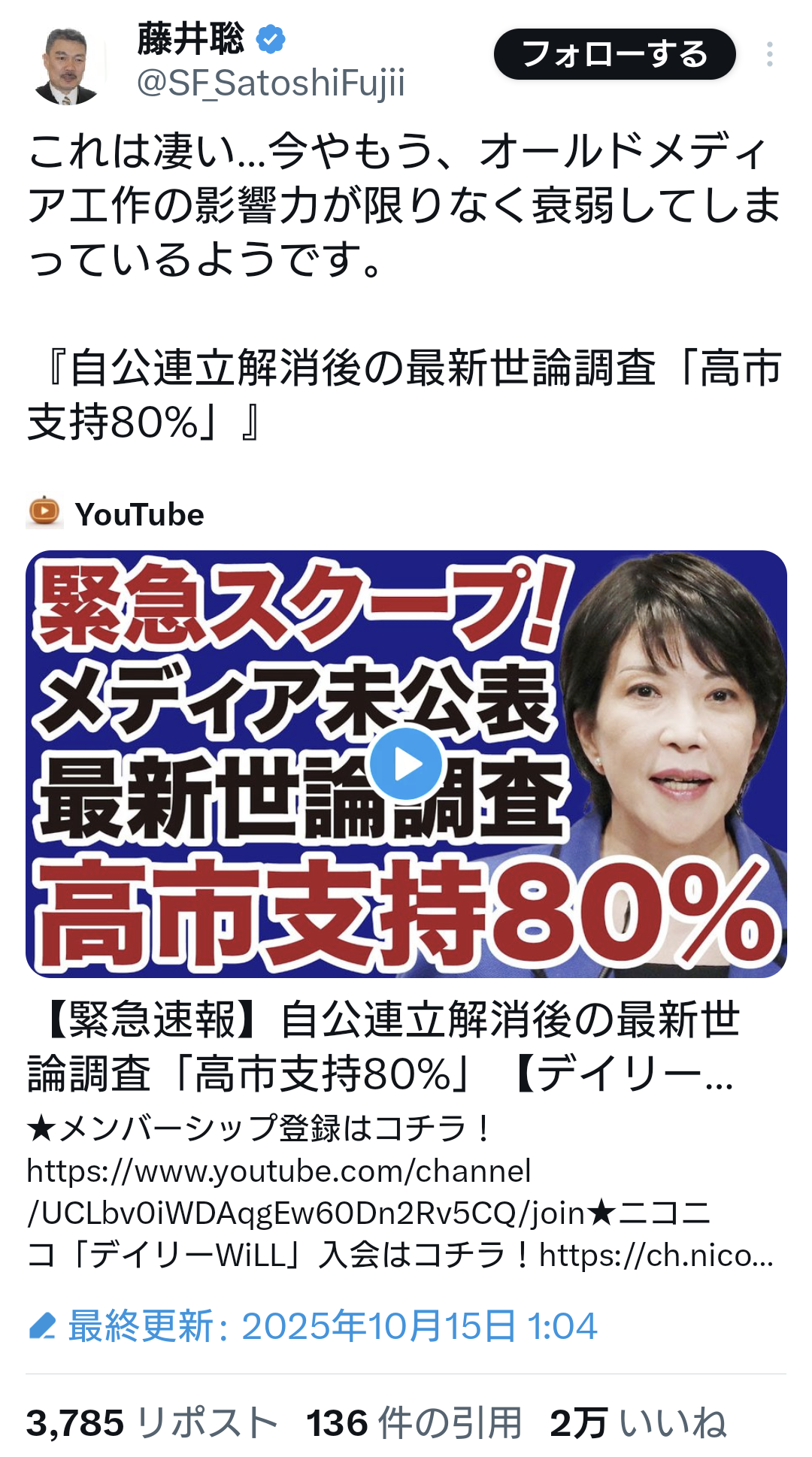高市には期待してるが、Xのアンケとか電話アンケより意味がないw