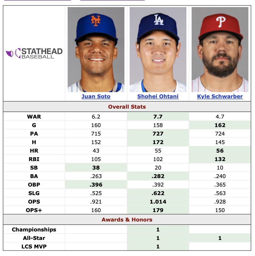 どんだけシュワーバーを贔屓目に見ても大谷の方が上