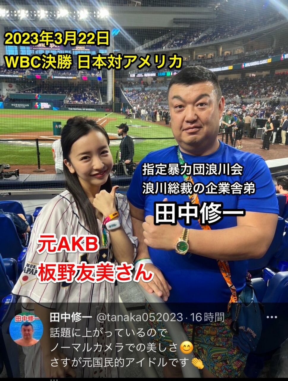 過去に違法薬物疑惑報道や関東連合の灰皿に*接待報道された板野友美(薬物逮捕された田中聖の*フレンド)